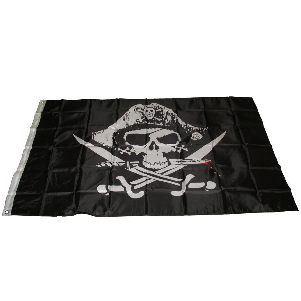 5ft x 3ft Pirate flag with eyelets one side for pole attachment. High quality 170T Polyester material. A great addition for interiors, exteriors a...