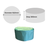 Heavy-Duty Chain Drum Cover made from a high quality, PVC (approx 600gsm) weight. The cover has a 61cm diameter and 30cm drop for generous securing. Bottoms are hemmed and sewn for a quality finish and is suited for standard sized chain drums/barrels.