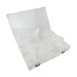 - Large clear plastic storage box with secure clips.