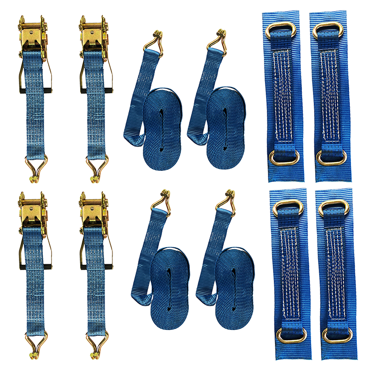Vehicle Lashing Recovery kit consisting of 4 x 50mm Wheel Straps, 4 x 50mm Ratchet Lashing Straps (Handle and Tail) - Minimum Breaking Load of 500...