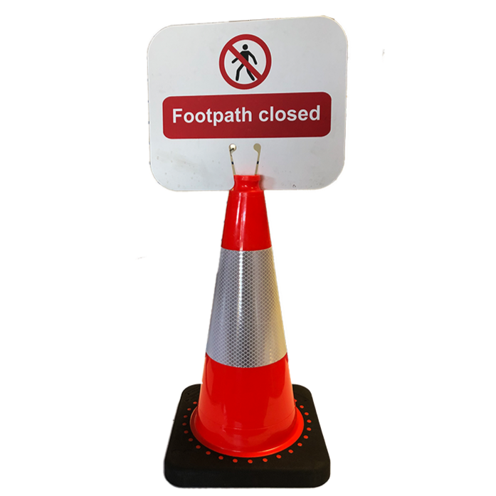 Plastic 'Footpath Closed' Sign with cut-out to attach to Traffic Cones.